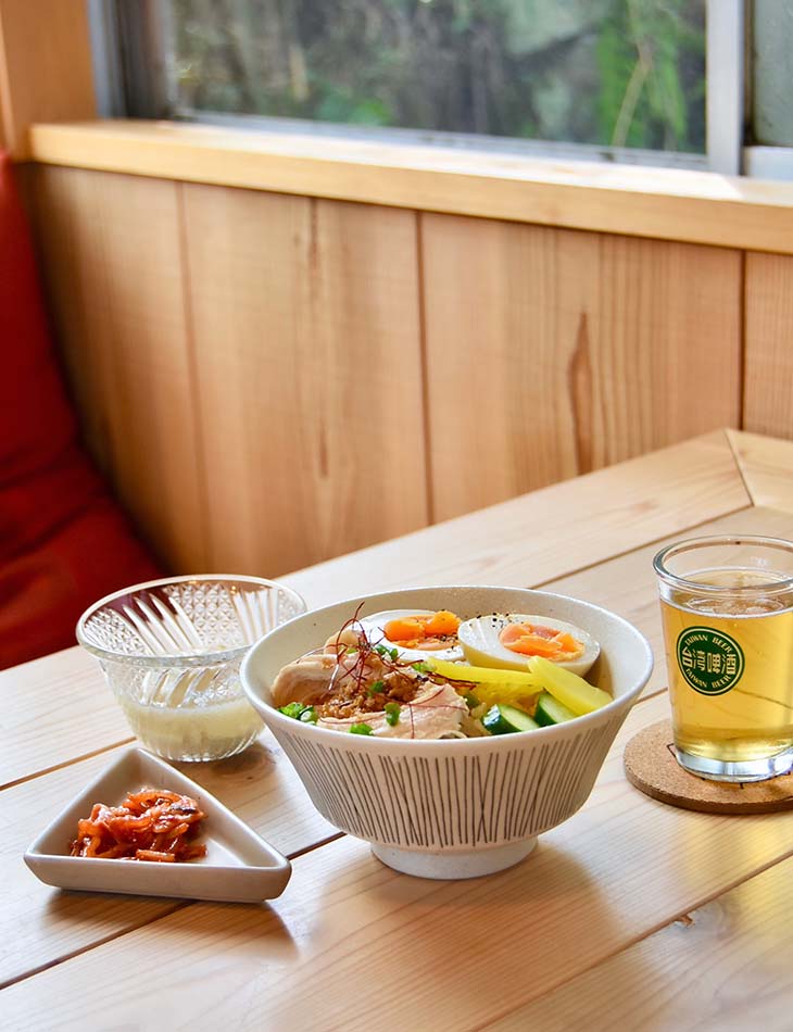 名物の「滷肉飯(ルーローハン)」や「鶏絲飯(ジースーハン)」は、優しい味わいながらしっかりとした旨味。豆花(トウファ)や仙草ゼリーなどの台湾スイーツもそろい、香り高い台湾茶とともに、心も体も癒される時間が流れます。