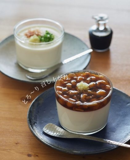 そのままで、シンプルな薬味や、あんかけと一緒に手作り豆腐の美味しさを味わってください。