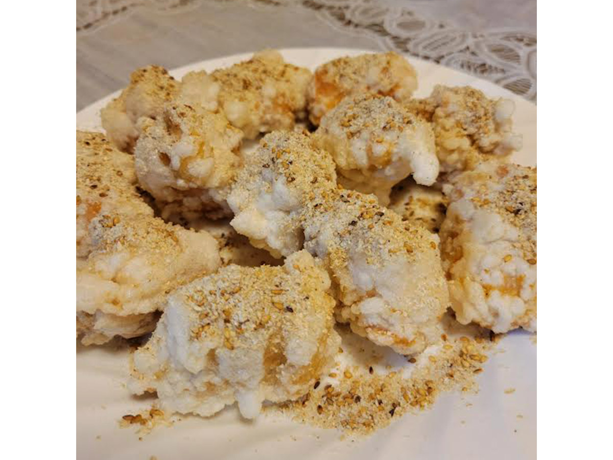 ここの唐揚げは片栗粉と卵白を混ぜ合わせた衣で揚げているため、別名「白い唐揚げ」と言われている。お肉はとてもジューシーでもっちりとした衣でまとわれ、胡麻と塩コショウが混ざったスパイスがふんだんにかかっているのが特徴。お店で食べてもお土産用に別で持ち帰ってしまうほど。すぐになくなってしまう満足感の高いリピートメニューだ。