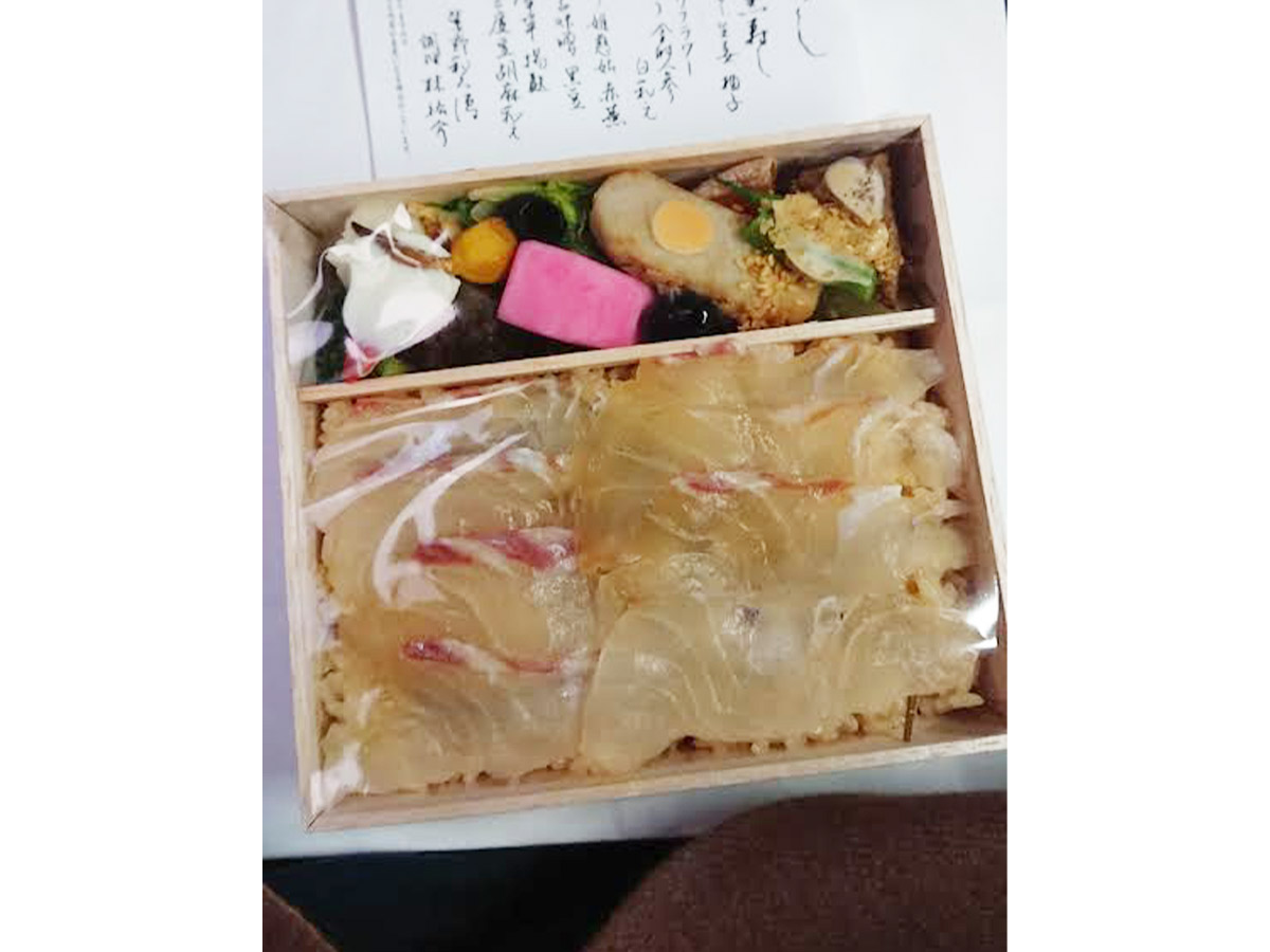 薄造りの鯛が敷き詰められた特製のお弁当は、京都に行ったときには必ず食べるお弁当。大好きで何度も頂いているが副菜も丁寧に仕上げられていて気分まで上品になる。京都の伊勢丹で予約をして高速バスに乗る前に受け取って、飛行機に乗る前に食べるのが私の京都旅行の定番となっている。来年も京都旅行の折には必ず食べたい。