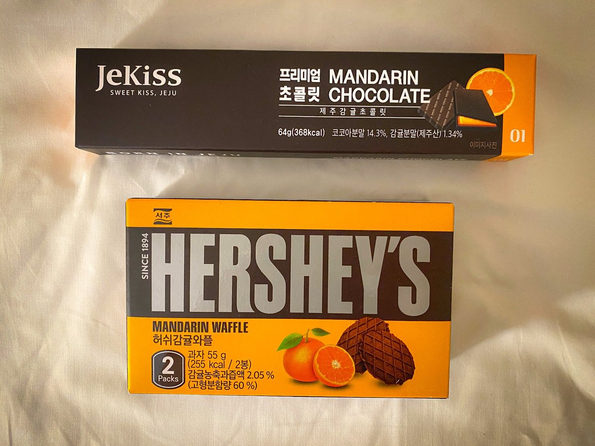 島内の至るところで販売されている、済州みかんを使った『HERSHEY’S』の「ショコラワッフル」。チョコレートのコクに、みかんの爽やかな香りと酸味が重なり、軽やかな味わいに仕上がっています。