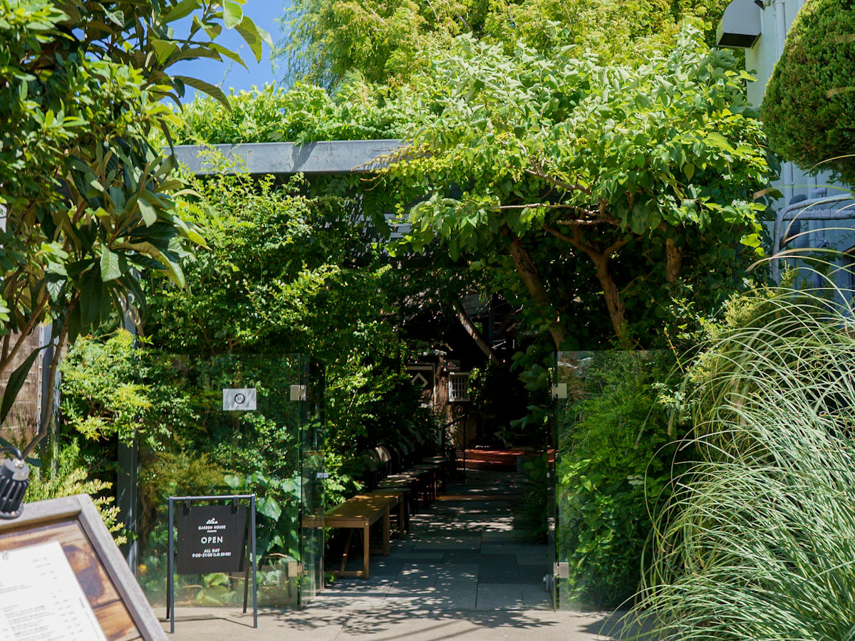 鎌倉駅西口から徒歩3分ほどの場所にある、緑に囲まれた人気カフェ『GARDEN HOUSE Kamakura(ガーデンハウス鎌倉)』。落ち着いたウッディなインテリアの中、広大なお庭に広がるテラス席で心地よくいただけるパンケーキが大人気です。