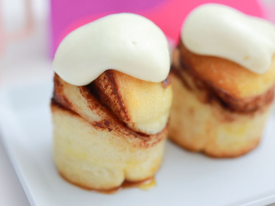 食べ方はとても簡単。電子レンジで加熱(500Wで60秒 / 600Wで40秒)するだけで食べごろに。解凍が進むにつれて、甘くスパイシーなシナモンの香りがふわっと広がります。