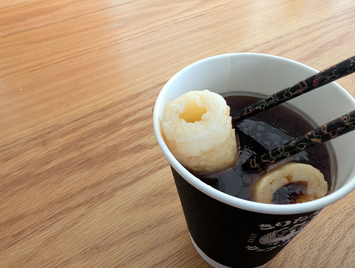 さらに、きりたんぽの印象ががらりと変わるのが、「おしるこ」です。きりたんぽを甘味として楽しむという意外性のあるアプローチですが、実際に味わってみると、きりたんぽのほのかな塩気と小豆の甘さが絶妙なバランス!