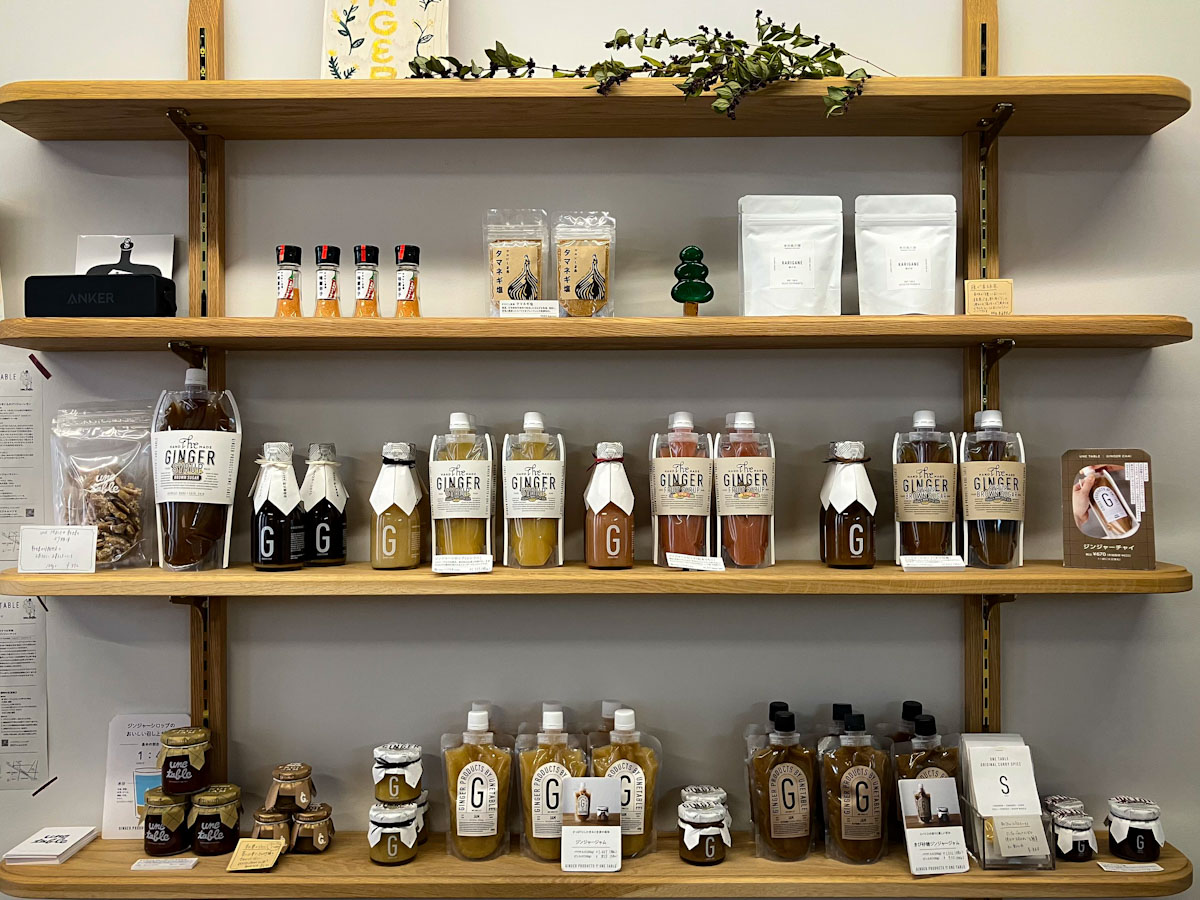 大和西大寺駅近くにある『UNE TABLE』。ビルの2階にひっそりと隠れ家のようになお店。店内にはジンジャーシロップやジャムなど、丁寧に作られた商品が並びます。同店のジンジャー製品は、奈良のミシュラン掲載店や多くの有名店でも使われているそうで、パウチ入りのジンジャーシロップも販売されているので、自宅でも『UNE TABLE』のジンジャーチャイを楽しめますよ。