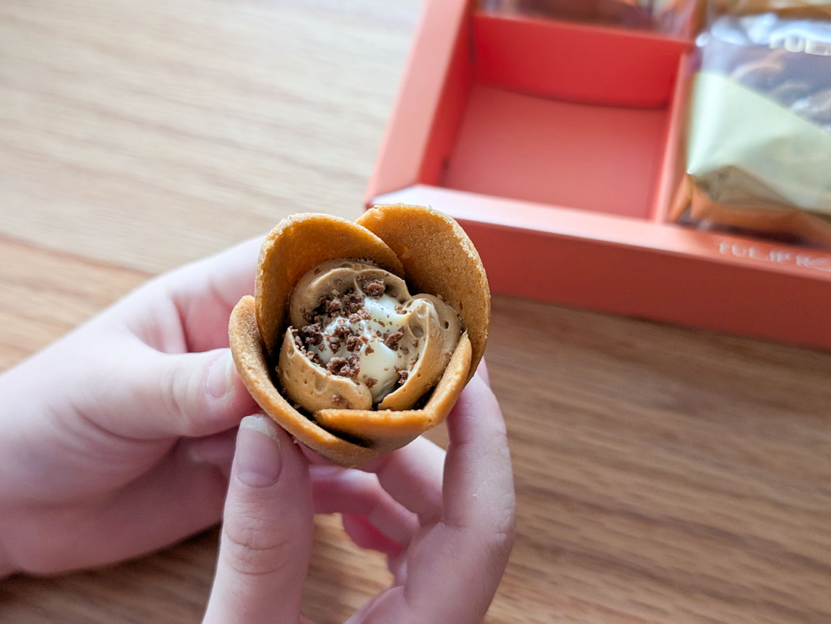 花びらのように繊細なラングドシャの器に、ふんわり軽やかなマロンクリームを重ね、華やかなモンブラン仕立てに仕上げています。スイーツの花束を贈るような可愛らしさで、手にした瞬間から気分が上がる一品です。販売は東京駅構内の「SWEETS GATE TOKYO」など。ギフトにも最適です!