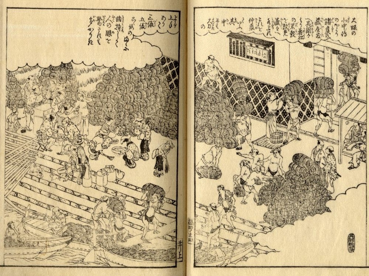 大阪で、おこしが広まったのは、江戸時代半ばのこと。天下の台所と呼ばれた当時の大阪には、全国から良質なお米や水飴、砂糖が集まりました。