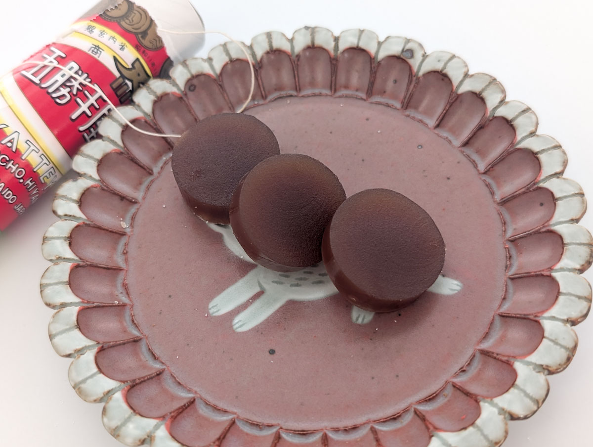 『五勝手屋羊羹』といえば、筒状の容器に入った羊羹を、糸でくるりと切り分ける独特のスタイルが特徴です。