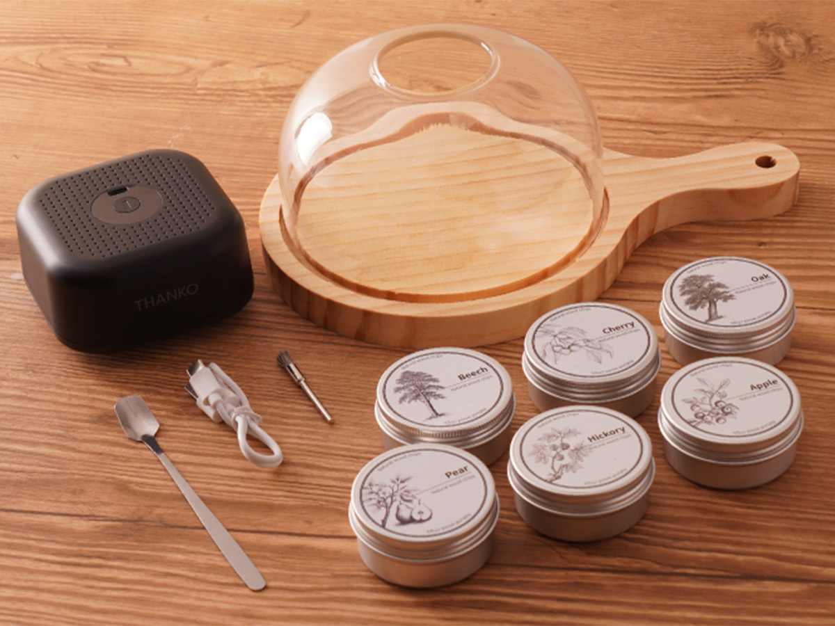 「グルメスモークセレクション」は、場所を選ばず燻製作りが楽しめる卓上燻製器。スモークポットや燻すためのチップなど、燻製に必要な道具が全て揃ったフルセット仕様なので、購入後は食材を用意するだけですぐに燻製料理に挑戦できます。