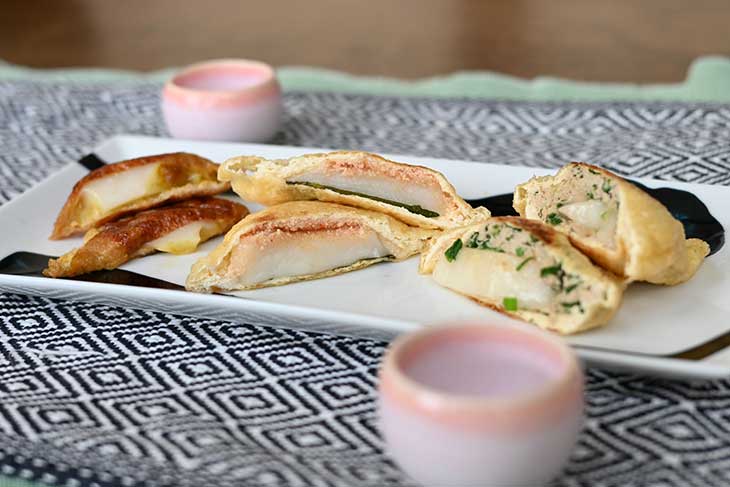 明太チーズ、つくね、カレー風味。「色々もち巾着」の作り方