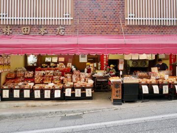 成田山新勝寺へ向かう坂の途中にある、創業100年を超える老舗『林田のおせんべい』。地元の人はみんなここの煎餅を食べて育った、といっても過言ではないほど親しまれているお店です。