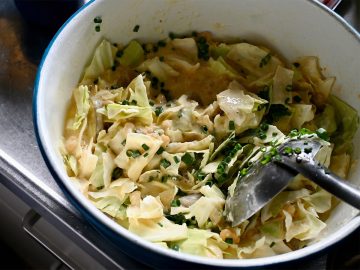 ・キャベツは「え、これでいいの?」と心配になるほど大きめのざく切りに。これが最重要ポイント。