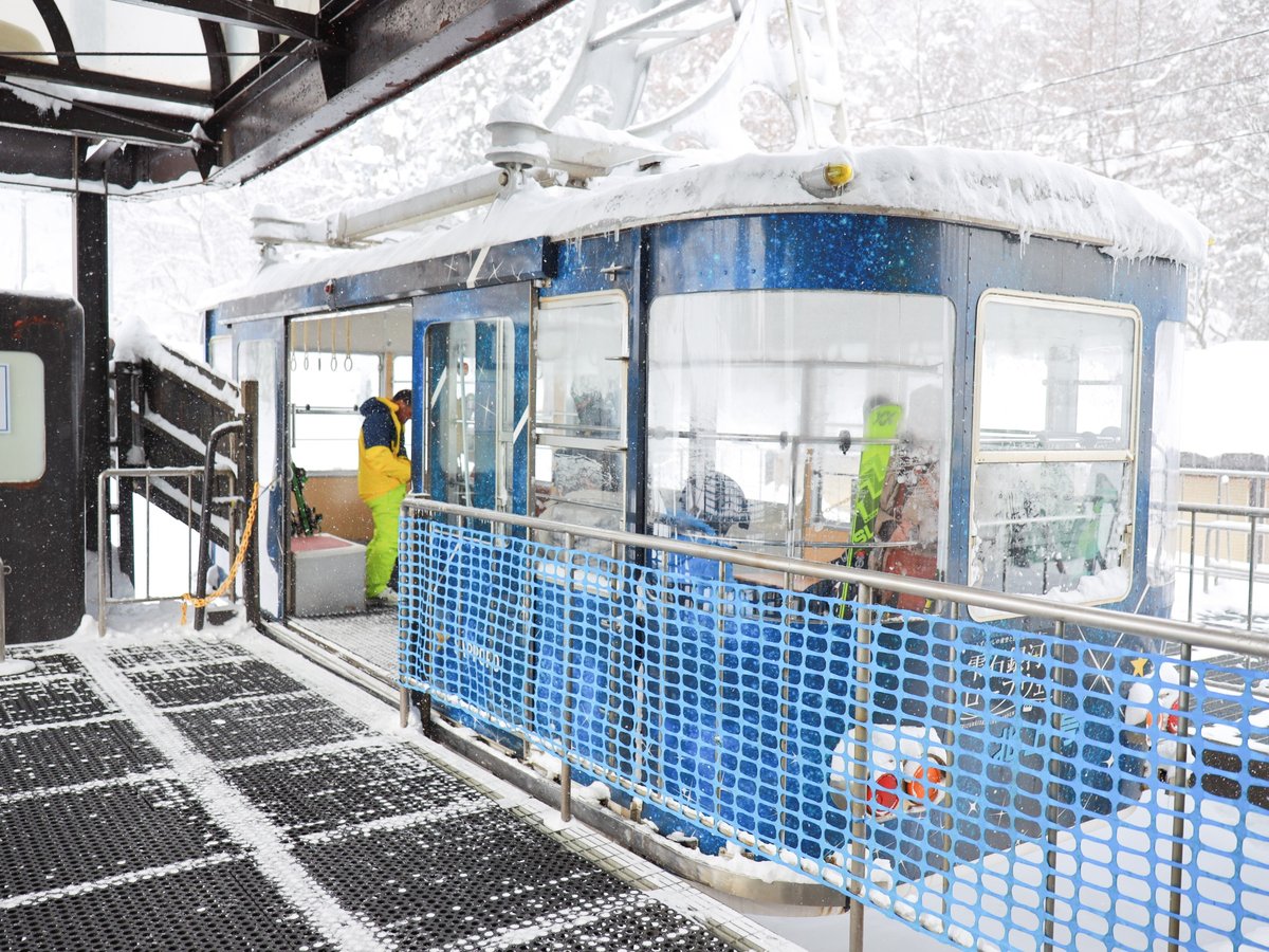 ランチは、どこか懐かしさを感じるレトロなロープウェーに乗って、ゲレンデのスキー小屋へ。名物のオムライスでしっかりとエネルギーチャージをしました。冷えた体に、温かい食事がじんわりと染み渡り、最高!